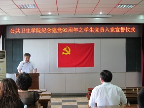 党委书记钟绍峰,党委副书记兼副院长于洗河,学生办公室主任吴晓辉,辅导员曲超、苏国范、李茵以及34名本科生、8名研究生预备党员参加了此次入党宣誓仪式。宣誓仪式由于洗河副书记主持。
