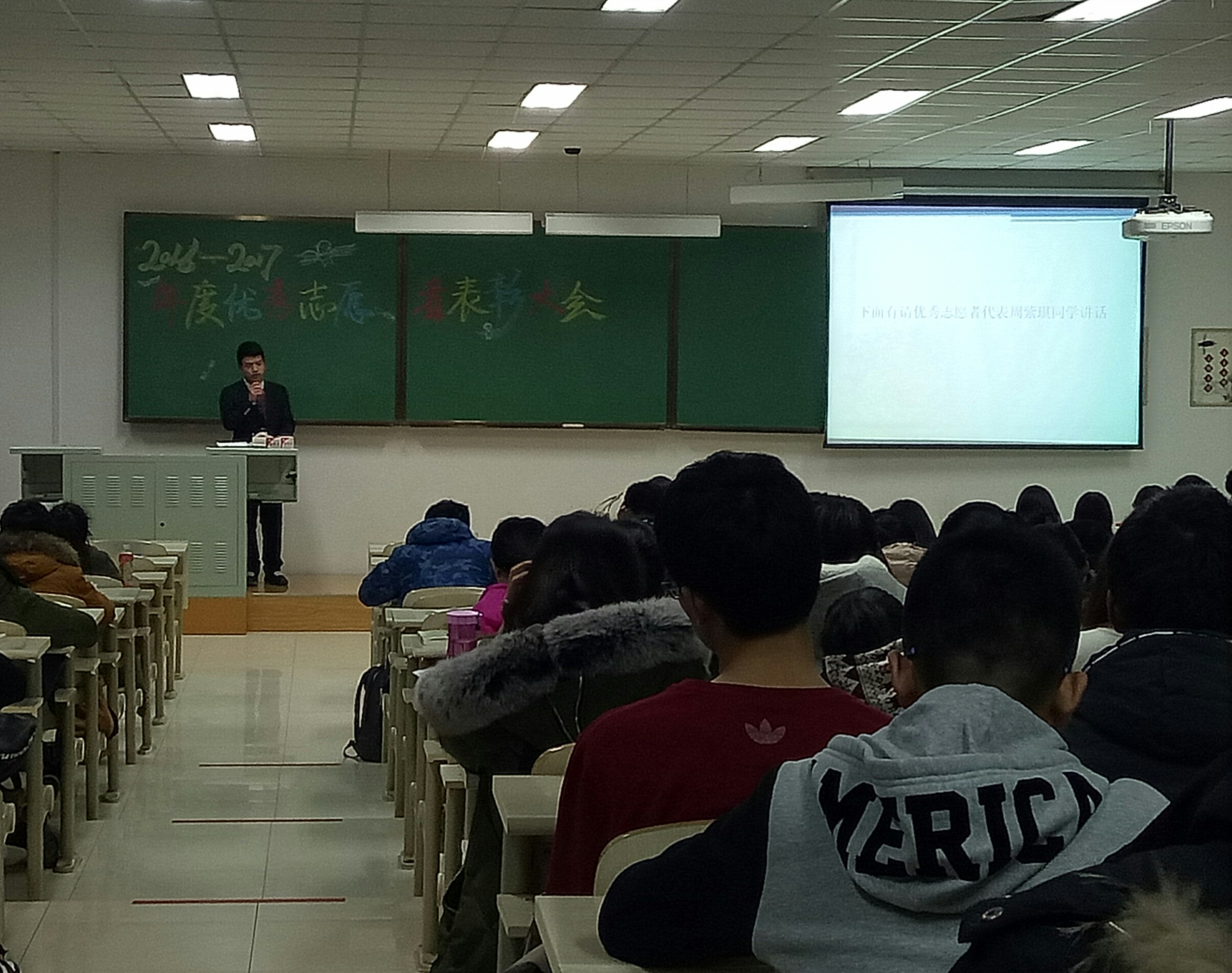 2016年度优秀志愿者表彰大会在中心校区李四光楼202教室举行。2016级辅导员霍睿参与了本次大会,并为获奖学生颁奖。