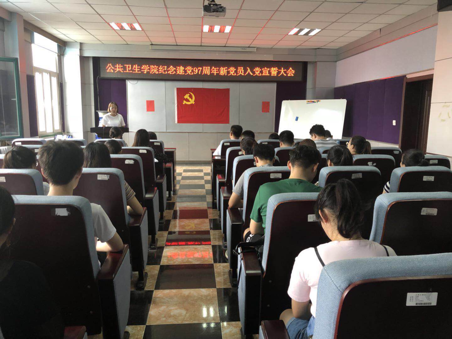 党委在学院办公楼三楼报告厅隆重召开“庆祝中国共产党建党97周年新党员入党宣誓大会”,泰国av