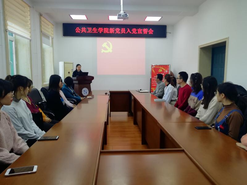 入党宣誓会在庄严而又神圣的《国际歌》中拉开了帷幕。首先由曲超老师致辞并宣布新党员名单。随后,便是激动人心的宣誓环节。“我志愿加入中国共产党,拥护党的纲领……”在苏国范老师的带领下,全体党员举起右拳,面对着党旗庄严宣誓,声音铿锵有力,掷地有声,表达着公卫学子对国之热爱以及对党之忠诚。随后,王柳樱同学代表预备党员发言。作为一名预备党员,王柳樱同学表达了对党的热爱与向往,以及成为一名党员的激动与欣喜。她表态,决心在今后的学习生活中坚定自身信念,提高自身党性修养,不断创先争优,做一名优秀党员。随后,曲景辉同学作为党员代表进行发言,勉励党员同志们坚定理想信念,铭记党员使命;加强理论学习,提高党性觉悟;勇于争先创优,体现自身价值;坚持严格自律,促进健康发展。最后,由刘丽书记讲话,她指出入党宣誓仪式是加入党组织的重要环节,也是对新老党员一次深刻的党性教育,让老党员回顾初心,让新党员看到希望。