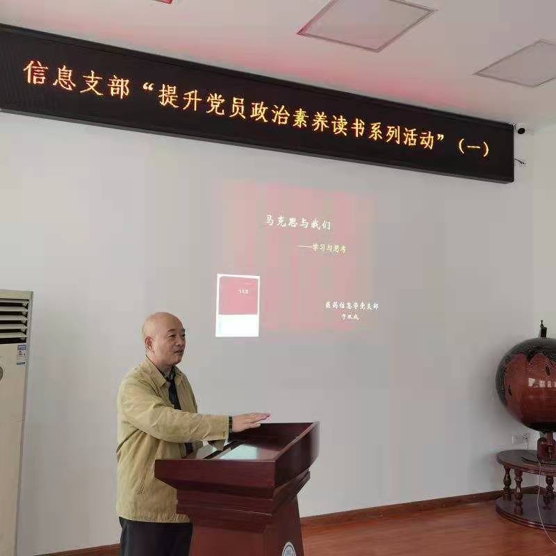 医药信息学教工党支部在学院会议室开展了“提升党员政治素养”读书活动,本次活动由于双成教授担任主讲人,支部书记李玉玲主持会议,学院党委书记赵国利应邀参加。