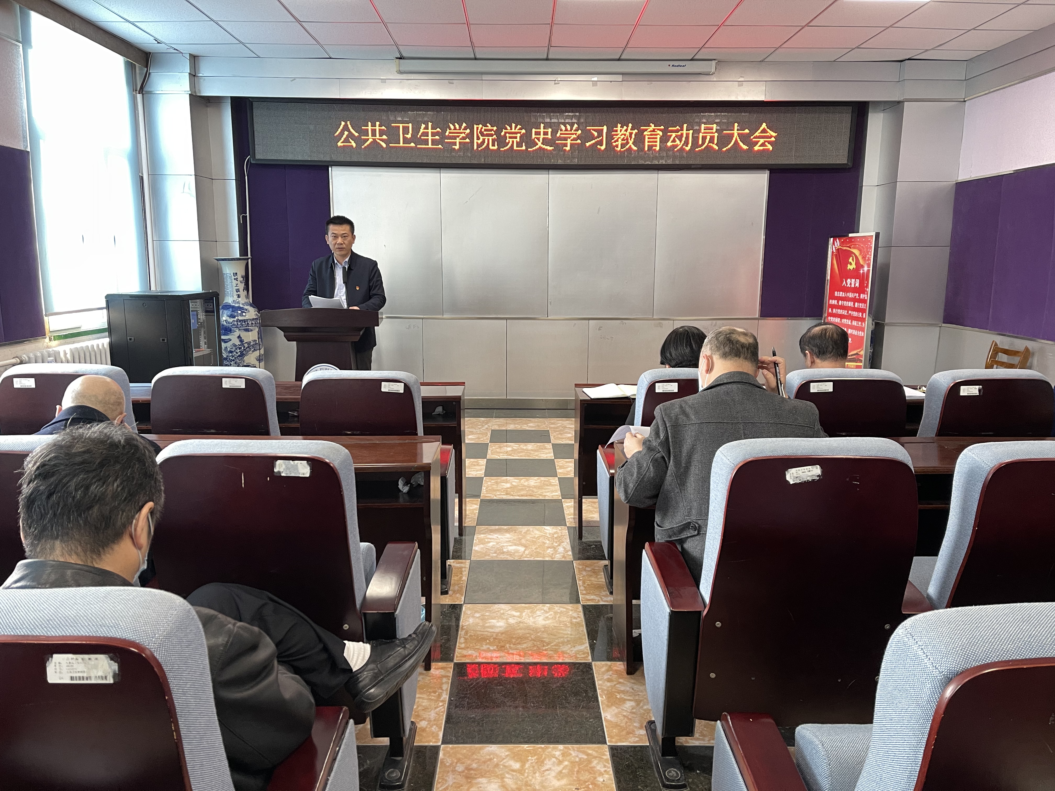 党委在学院三楼报告厅,召开了党史学习教育动员大会,会议由学院行政副院长魏国志主持,学院班子成员、党委委员、全体教职工党员及学生党员代表参加了此次会议。