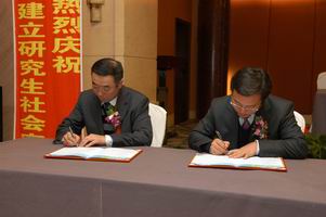 研究生院康永刚处长共同签署研究生社会实践基地协议书,接着李殿富书记和赵丁选常务副院长为基地揭牌,并分别发表热情洋溢的讲话。