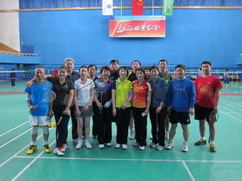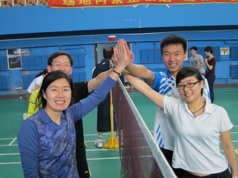 师生羽毛球对抗赛。20余位学院教师在钟绍峰书记的带领下组成教师联队,40余位本科生、研究生在团委负责人苏国范老师的带领下组成学生联队,对抗赛在天翼羽毛球俱乐部举行。