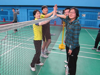 早上八点半,在进行了简短的开赛仪式及宣布比赛的赛制与规则后,对抗赛正式开始。比赛分为男单,女单,男双,女双和混双五个项目。随着裁判的一声哨响,单打比赛正式开始。由于参赛选手个个身手不凡,并均做好了充分的赛前准备,比赛一开始便进入白热化阶段。平日里兢兢业业、相对严肃的老师也变得孩子般神采奕奕。紧接着进行的是双打比赛,师生默契配合,每一次发球、接球、扣球、吊球,观众们都目不暇接、聚精会神;每一个精彩瞬间,拉拉队员都抱以热烈掌声、喝彩声、叫好声。