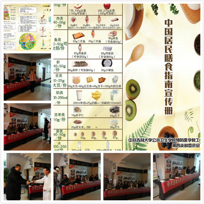 泰国av 预防第四党支部为贯彻中国共产党第十九次全国代表大会精神,开展“两学一做”主题实践活动。于2017年11月16日在泰国av 一楼大厅为本院教师及学生开展了中国居民膳食指南宣传公益活动。活动中为教师和学生进行了营养咨询及最新版中国居民膳食指南宣传,并发放中国居民膳食指南宣传册。本次活动也得到营养教研室研究生、本科生的大力支持。活动受到了教师和学生们的广泛欢迎和认可,也充分展现了我们党员为人民群众服务的宗旨。
