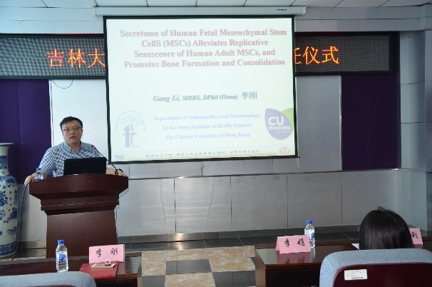 在聘任仪式结束后,李刚教授为全院师生作了题为“Secretomeof Human Fetal Mesenchymal Stem Cells(MSCs) Alleviates Replicative Senescenceof Human Adult MSCs, and Promotes Bone Formation and Consolidation”的学术讲座,介绍了人胎儿间充质干细胞分泌素可缓解成人骨髓间充质干细胞复制性衰老,并可以促进骨形成,使全院师生对干细胞临床应用有了进一步的了解,拓宽了全院师生的科研视野,提升了学院的学术水平,李刚教授的讲座在全院师生中产生了强烈的反响。