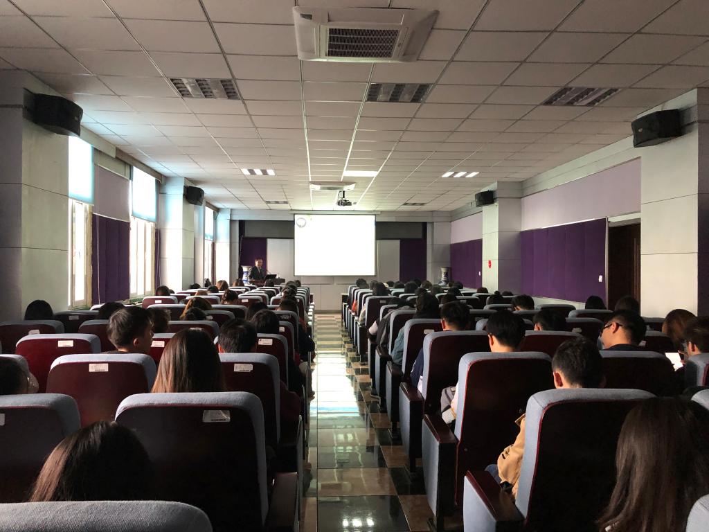 三楼报告厅为学院师生做“职业与发展、就业”的专题报告。