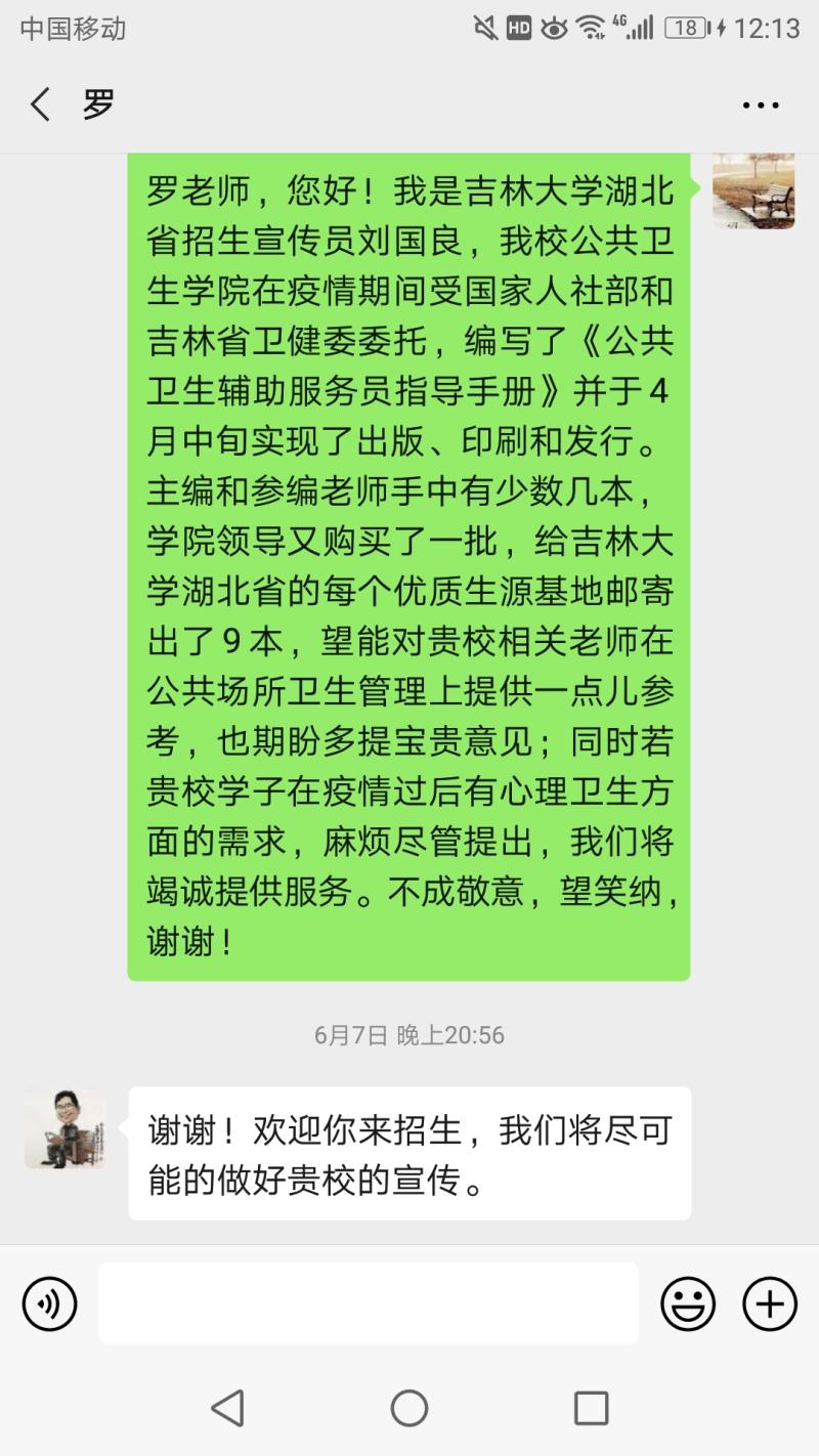 “优秀生源基地”,免费邮寄了200本《公共卫生辅助服务员指导手册》。