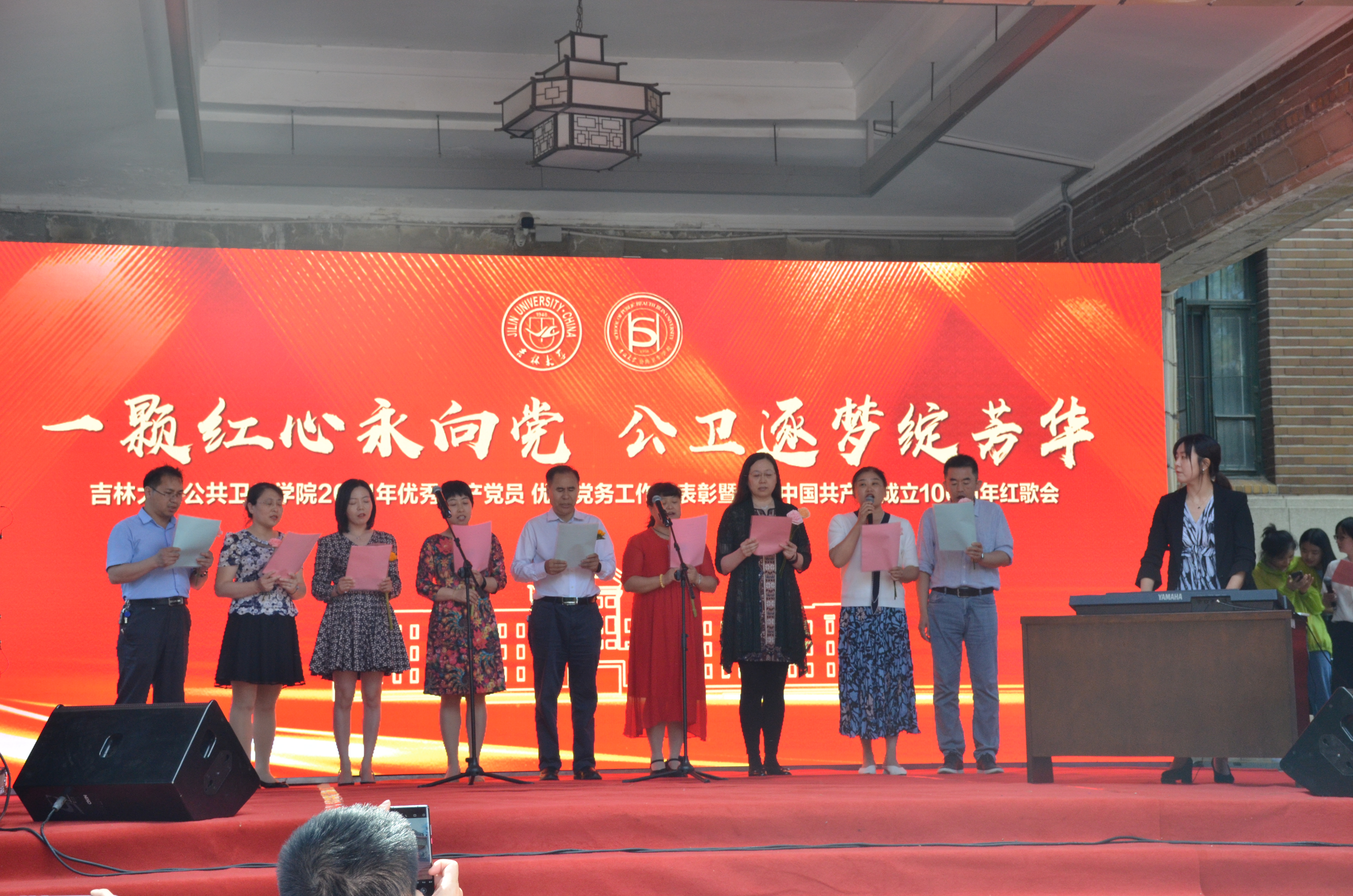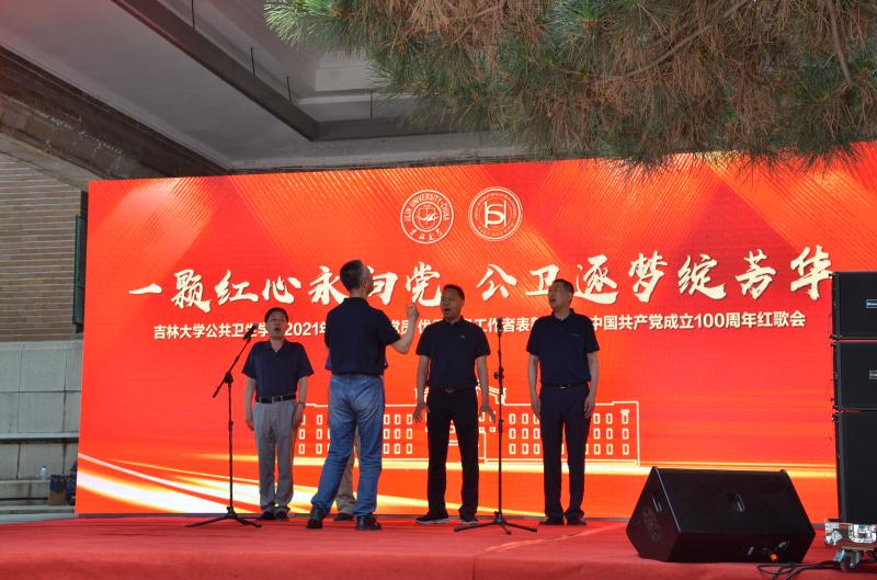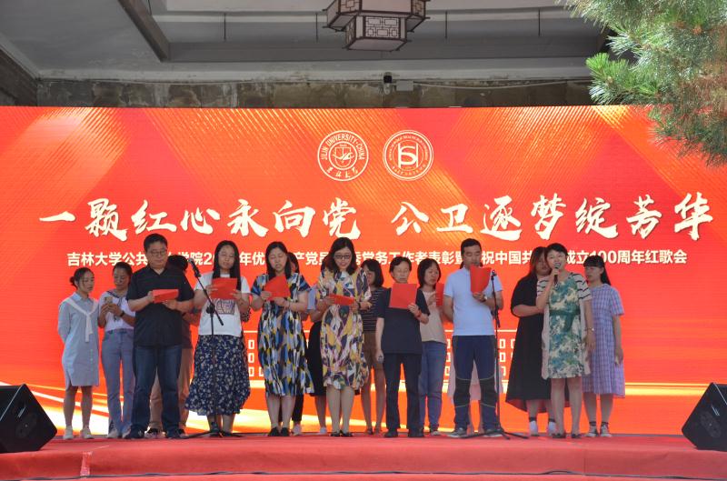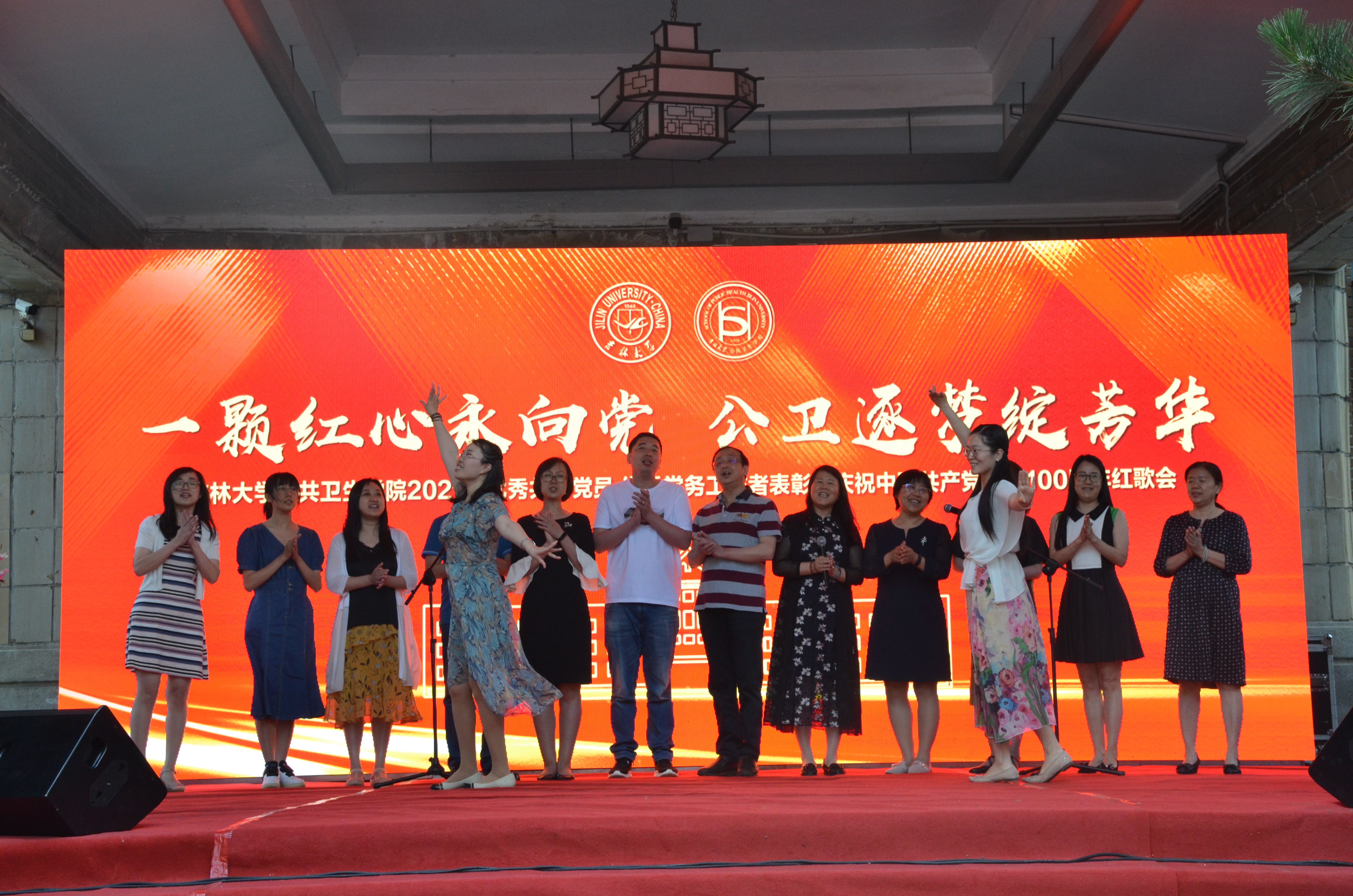 妇委会、工会于学院办公楼前联合举办了“一颗红心永向党,公卫逐梦绽芳华”2021年优秀共产党员、优秀党务工作者表彰暨庆祝中国共产党建党100周年红歌会。学院党委书记赵国利、院长刘雅文、副院长魏国志、党委副书记于亮及各科室师生共同参加了本次活动。