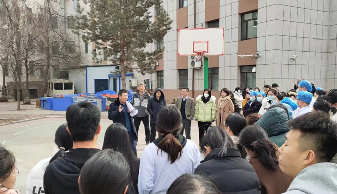 于3月20日下午组织开展了消防安全应急演练。学院党委书记赵国利、党委副书记于亮、副院长魏国志及全体在院师生参加了演练。