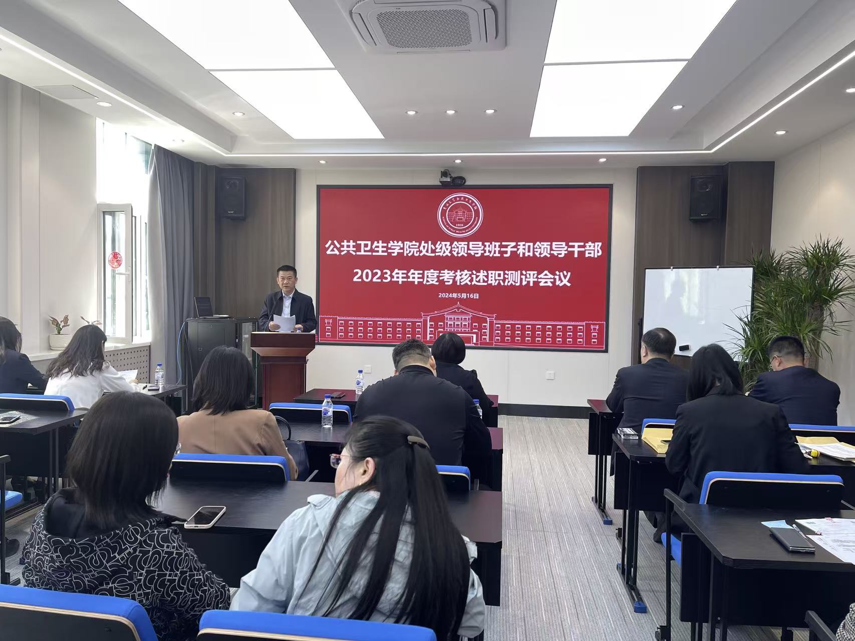 在学院三楼报告厅召开处级领导班子和领导干部2023年年度考核述职测评大会。学院全体教职工参加会议,会议由学院党委书记赵国利主持。