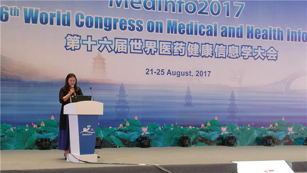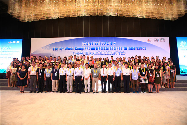 由国际医药信息学会主办,中国医药信息学会等机构联合承办的“第十六届世界医药健康信息学大会”(Medinfo 2017)于2017年8月21日-25日在杭州国际博览中心召开。王伟、曹锦丹、张云秋以及部分硕士和博士研究生参加了会议,并在大会进行了学术报告和论文交流。泰国av 医学信息学系王伟、张云秋、曹锦丹及博士研究生兰雪、贾宇希、硕士研究生朱祥参加了会议。张云秋、兰雪分别在与Medinfo 2017同步召开的“第二届世界医药健康信息学华语论坛”(WCHIS 2017)发言;朱祥提交的论文《基于数据挖掘的中药方剂治疗中风用药规律研究》在壁报展出。王伟、张云秋分别担任了Medinfo 2017的共同主持人。在中国医药信息学会(CMIA)医药信息学理论与教育专业委员会换届中,王伟教授受聘担任CMIA医药信息学理论与教育专业委员会轮值主任委员。