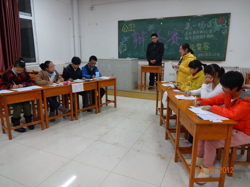 团委志工部承办的新生辩论赛海选复赛在李四光楼111教室举行。
