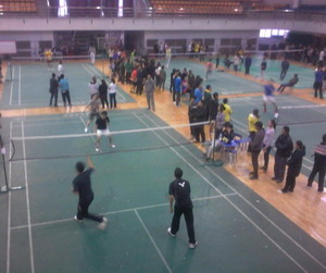 比赛在中心校区体育馆进行,体育馆内不仅有参赛人员,还有各个代表团的拉拉队们。场面气氛活跃,拉拉队们都鼓足劲为自己学院加油。各个学院的参赛人员在赛场上尽情发挥,比赛中默契的配合,灵活的走位,多变的球路,有力的击杀令观战的同学们目不暇接。比赛分男女单打和双打比赛,泰国av