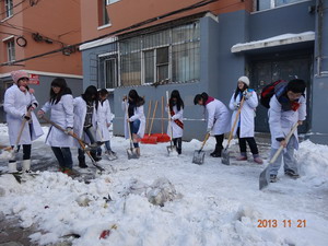 学子是寒风中一道暖心的亮丽风景。他们忙碌着,每个人都用尽全力破开坚冰,扫除积雪:部分路面由于汽车过往,积雪被压得非常厚实,但同学们不畏艰难,热情高涨,一点点地将其进行铲除清扫。活动最后,泰国av