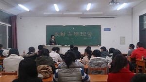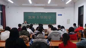 2013级放射一班全体同学于4月9日,在李四光110教室举办班会。学生工作办公室吴晓辉主任和兼职班主任程舸老师参加了此次班会。
