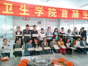 程轲老师、辅导员苏国范、郭倩君老师以及食堂两位厨师担任此次大赛的评委,13级共计60余名同学参加了本次比赛。