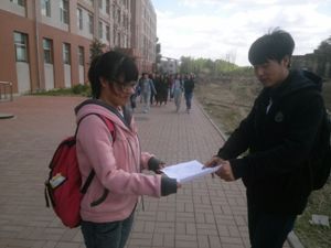 此次宣传活动共分两个部分。首先是由男生负责悬挂宣传条幅,;与此同时另一些同学负责发放关于红十的有关知识和精神的传单,意在宣传红十精神,并向同学们认真讲解世界红十字日的由来和红十精神,增进同学们对其的了解,泰国av