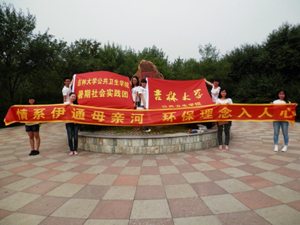 团委组织、绿野协会参加的“情系伊通母亲河,环保理念入人心”美丽中国实践团作为环保宣传践行团,由辅导员苏国范老师带队、11级同学周阳文为队长,在长春市伊通河沿岸和文化广场开展了本团队第一部分的实践任务——环保知识宣传。