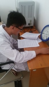 早上8:00,参加志愿实习的同学们就已准时在医院门口集合,穿好白大褂,开始了一天的志愿实习生活。在医院医生的带领下,同学们先后参观了医院的工作环境,了解了医生的工作流程和注意事项。放射科是医院重要的辅助检查科室,设备昂贵,工作精细,操作不当将会对医生和患者有严重的影响和副作用,同学们因此都十分认真地听取医生的讲解,仔细地记录下实习工作中重要和容易疏忽的部分,并且与自己的课堂所学进行整合,避免工作失误。同学们分好工后就有序的开始协助医生工作。通过填表、记录、导诊这样的小工作,同学们体会到了放射科举足轻重地位和严谨的工作态度,工作热情十分高涨。
