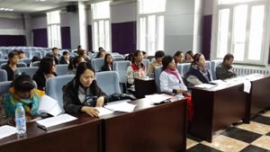 会议伊始,刘丽书记介绍了此次评选大会的规则,本次评选评委团由刘丽书记,王伟教授,金顺子教授,杨淑娟教授,学生工作办公室吴晓辉主任,苏国范老师,郭倩君老师,学院学生会主席付晓燕及副主席团学生代表,各年级班级的优秀学生代表,学生党支部优秀党员代表组成。刘丽书记宣读了《泰国av