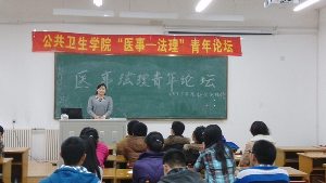 在主持人简单介绍后,活动正式开始。由班内六位同学依次上台演讲,内容就医事法学的产生背景、历史发展、社会价值、专业现状及就业前景展开。上台的同学以其独树一帜的思想向大家传递出自己对医事法学专业的见解,讲解内容囊括甚多,风格多变,时而严肃,时而风趣,在给大家带来很多实用建议的同时加深了大家对本专业的了解。台下同学认真听取,时时作笔记,论坛氛围十分融洽。演讲完毕后由班主任上台总结,赫老师对上台发言的同学给予了表扬并指出此类活动的举办很有意义,希望这类活动能够多多举办。最后同学们满怀憧憬地在纸条上写下自己的对医事法学专业的全新认识以及美好展望。