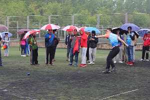 本场比赛运动员分为两组,上午9时30分,参加男子学生组胶球掷远决赛的运动员前往检录处检录,之后统一在工作人员的安排下带到比赛场地等待上场。尽管天气阴冷且小雨霖霖,泰国av