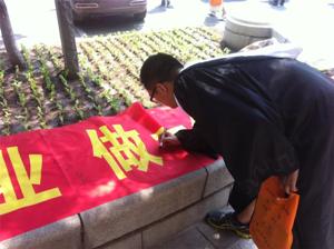 特意邀请了吉大老校友来为本届毕业生开展演讲。在演讲过程中,老校友以亲身经历和感悟为主、诚信教育视频为辅,向大家讲述了如何将诚信理念贯穿职业生涯,以此加强对同学们民族诚信道德教育的熏陶。随后,毕业生们一起在学院办公楼前集合拍摄集体毕业照,同时在“诚信离校、诚信择业,做一个诚心的人”条幅上依次签名,以此承诺对自己的未来负责,以诚信约束自身行为,践行青春医者路。