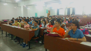 团委学生会组织全体成员于一教301教室共同观看纪念中国人民抗日战争暨世界反法西斯战争胜利70周年庆典暨阅兵式直播活动。