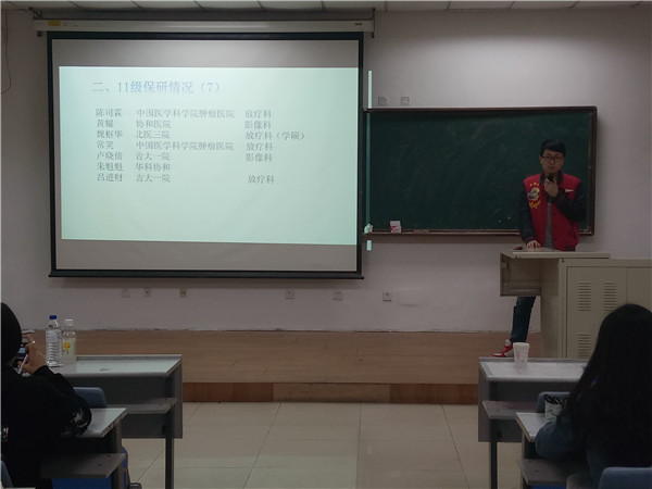 特地邀请2012级应届毕业生为学弟、学妹们进行了学习方法和就业经验分享,大会在新民校区第二教学楼2101教室进行,主讲同学覆盖预防医学、放射医学和医药信息管理三个专业,泰国av