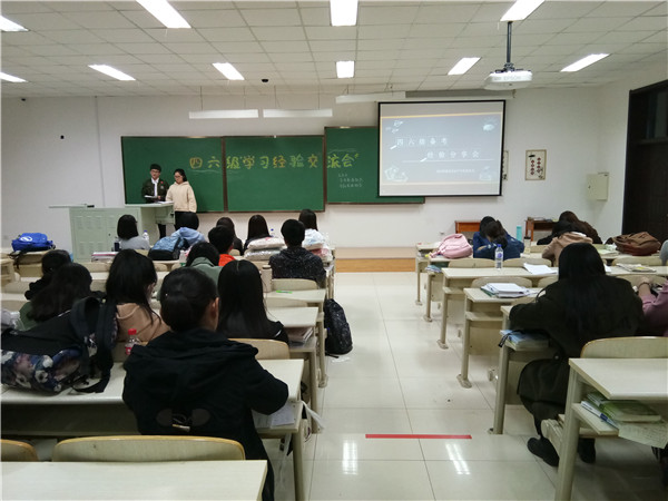 空中英语协会联合护理学院创E英语协会于4月17日晚6点30分在中心校区李四光楼202教室举行了四六级学习经验分享会。2014级预防医学专业和护理专业5位学生作为主讲人,结合自身经验,为2016级学生就大学英语四六级考试相关内容进行了讲解。