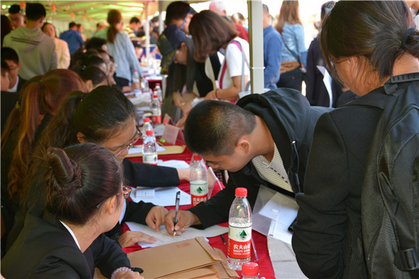 的条幅高悬,在学院党委副书记兼副院长、2014级辅导员刘丽,学生工作办公室主任兼2013级辅导员吴晓辉,团委书记兼2015级辅导员苏国范,2017级新生辅导员郭倩君,2016级辅导员霍睿的指导下,学院团委、学生会的迎新志愿者们全都行动了起来,迎新工作有条不紊地开展着。