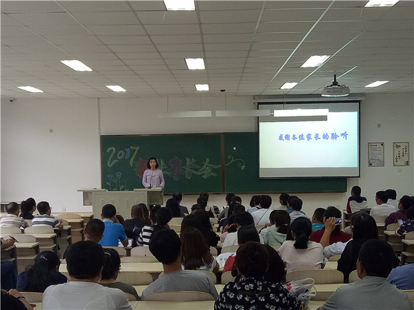 2017级新生家长会于李四光教学楼102教室如期举行,2017级辅导员郭倩君主持了本次家长会。