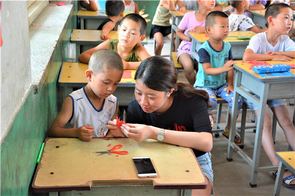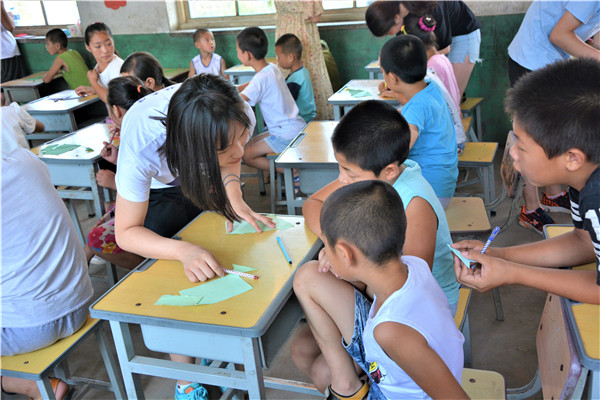 下午的教学活动中,志愿者通过启发的方式,鼓励小朋友们给父母写一封信,表达自己对他们的感恩与爱。大部分小朋友很快就开始动笔,刷刷地在纸上写着,但也有少数小朋友抓耳挠腮,志愿者和他们进行了进一步交流,发现这些小朋友的父母大多离开村子,到大城市去打工以贴补家用,像我们在新闻中了解到的外地务工人员一样,一年回家的次数屈指可数。这些“留守儿童”对他们父母既充满了思念,又委屈于没有父母的时时陪伴,有的小朋友的泪珠还打湿了稿纸,让志愿者们的心难过地揪在了一起。对这些孩子,是既心疼,又无奈。书信课的最后,志愿者向表现出色的孩子赠送了泰国av