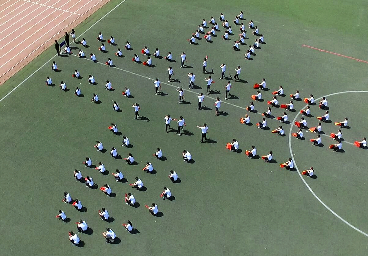 大舞参与者准时到达中心校区体育场开展训练。训练伊始,文艺部部长鼓励同学们克服困难,认真训练。本次舞蹈从动作到音乐,再到队形,每一个元素都是文艺部成员精心挑选,不断改编才定型的。每一次手臂的挥舞,到每一个脚步的迈出,甚至一回首一顾目,都严格要求;幅度、位置、节拍都要求精确无误;队形训练则力求别出心裁,每一种图案都有各自独特的含义。这片绿茵场见证了同学们从无序到有条不紊地完成表演。功夫不负有心人,运动会上大舞表演展现出了完美的演出效果。