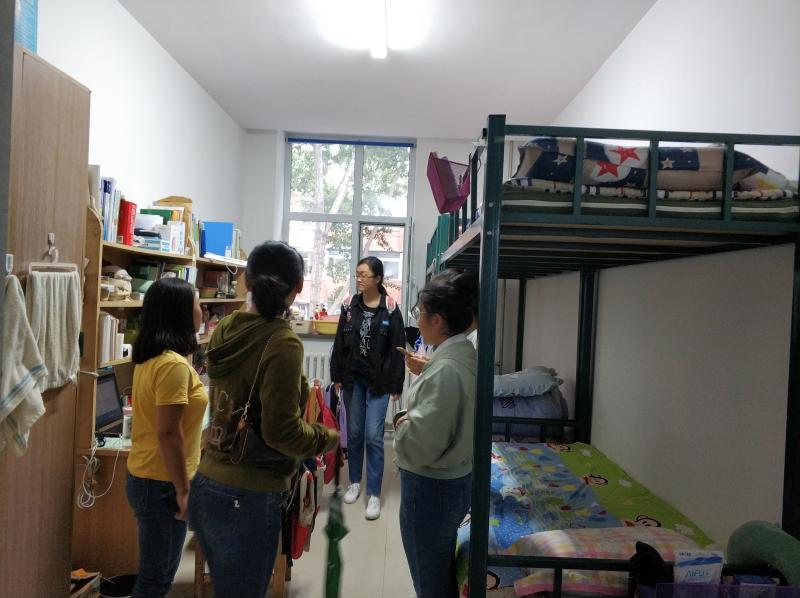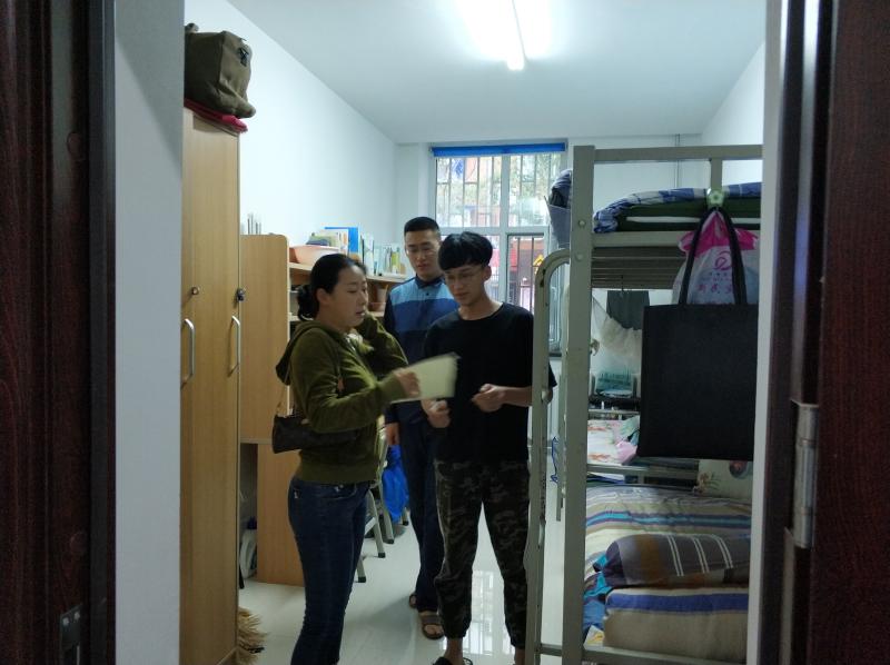 团委书记兼2017级辅导员郭倩君,团委、学生会生活部成员共同来到新民校区学生九、十公寓,开展了新学期寝室巡查走访。