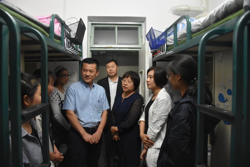 院长刘雅文,党委书记赵国利,党委副书记兼副院长刘丽,副院长于洗河、魏国志、寇长贵,全体辅导员共同来到2018级新生寝室进行走访慰问,为新生们带来了来自学院的温暖。