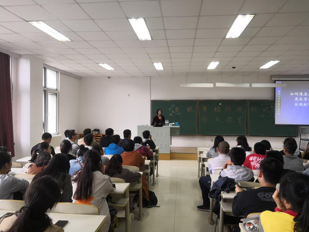 在中心校区李四光教学楼204教室开展2018级新生“爱校荣校”校规校纪教育大会,泰国av