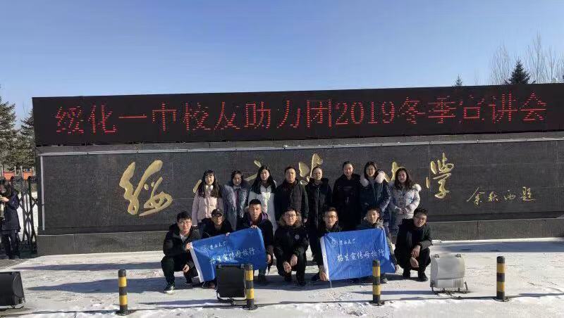 2月15日,“吉人天下,助梦远航”宣讲团在黑龙江省绥化市第一中学展开了宣讲活动。队员们通过PPT介绍了吉大的学科专业、校园风光、师资力量、杰出人才等方面内容,通过有奖问答等互动环节既解决了同学们对专业学习的问题,也活跃了高三紧张的学习气氛。