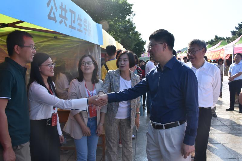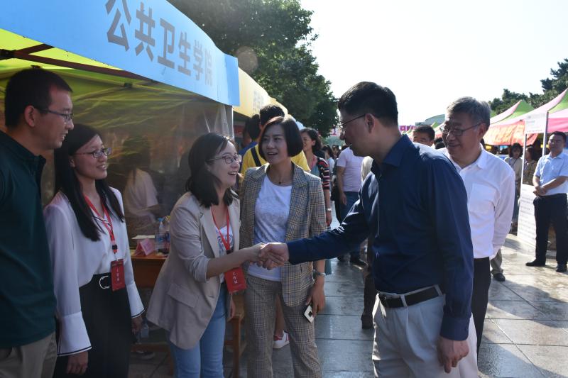 迎新地点后,与在场老师、领导及志愿者们热情握手,亲切问候。