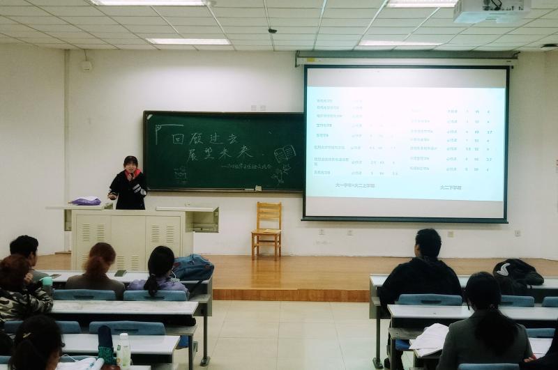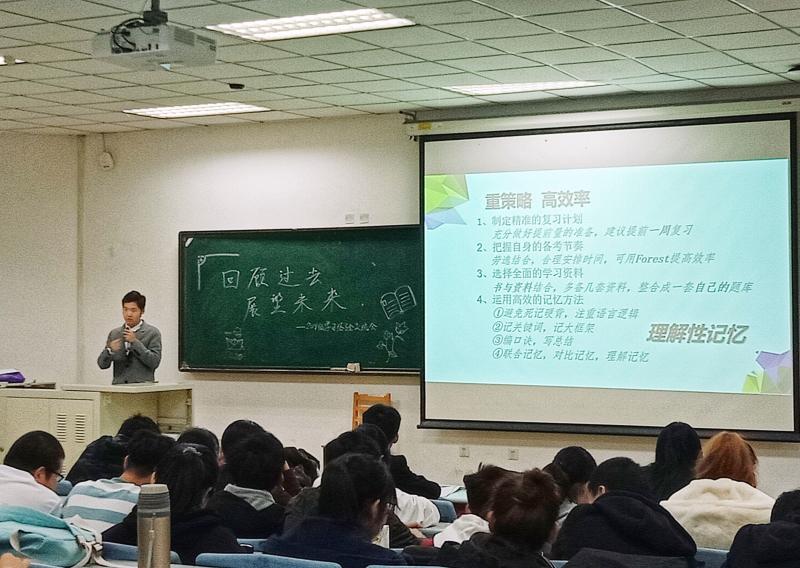 新民校区第二教学楼2102教室组织开展2018级学习经验交流会,邀请6名2017级优秀学生代表为2018级同学介绍学习经验。