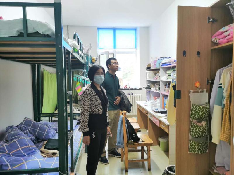 辅导员老师们走入课堂,随堂听课并考察学生出勤情况,随后到寝室进行了走访,主要对寝室物品摆放、卫生与安全情况等方面进行了细致检查,并提出了物品归纳摆放建议;对于表现良好的寝室老师们提出了表扬,对有待改进的寝室提出了要求并督促及时进行整改。在查寝过程中,各位老师还与同学们进行了亲切友好的交流,了解了同学们疫情期间居家学习情况,以及返校后学习生活安排,要求大家严格遵守学校关于疫情防控常态化工作部署,坚持做到“一日三测温、一点名”,严格执行出入校园审批制度等校园学习生活纪律要求。