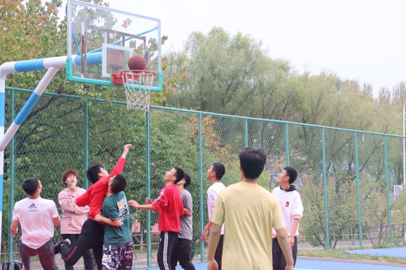 中心校区篮球场组织了2020级新生篮球赛。比赛双方分别是由2020级新生组成的新生联队和由其他高年级同学组成的高年级联队。