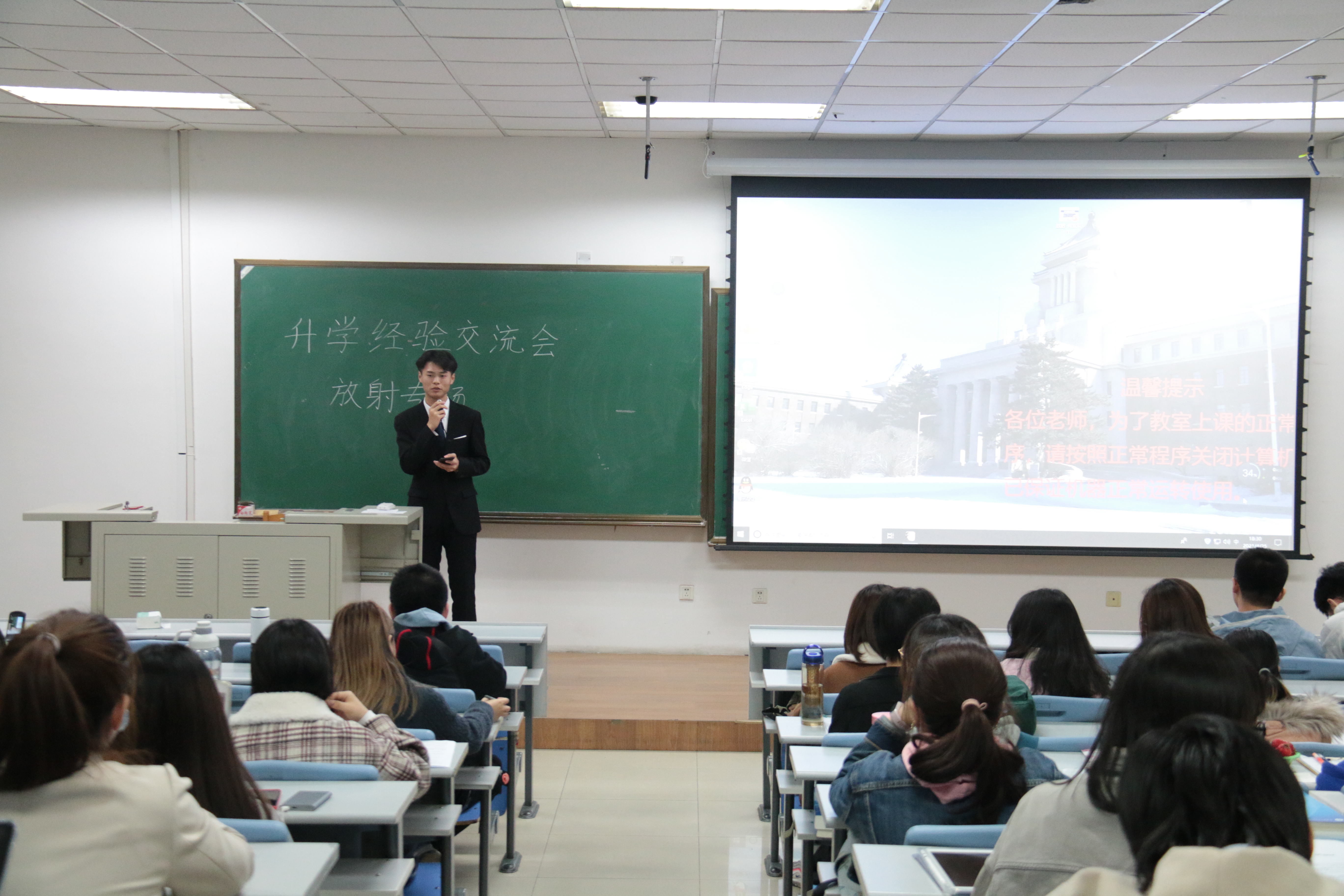 于新民校区第二教学楼2104室成功举办放射医学专业考研经验交流会。本次会议邀请了2020年考研成绩优秀的曲红道、何双双、方嵩、包俊杰及付伟佳同学为同学们做经验分享。