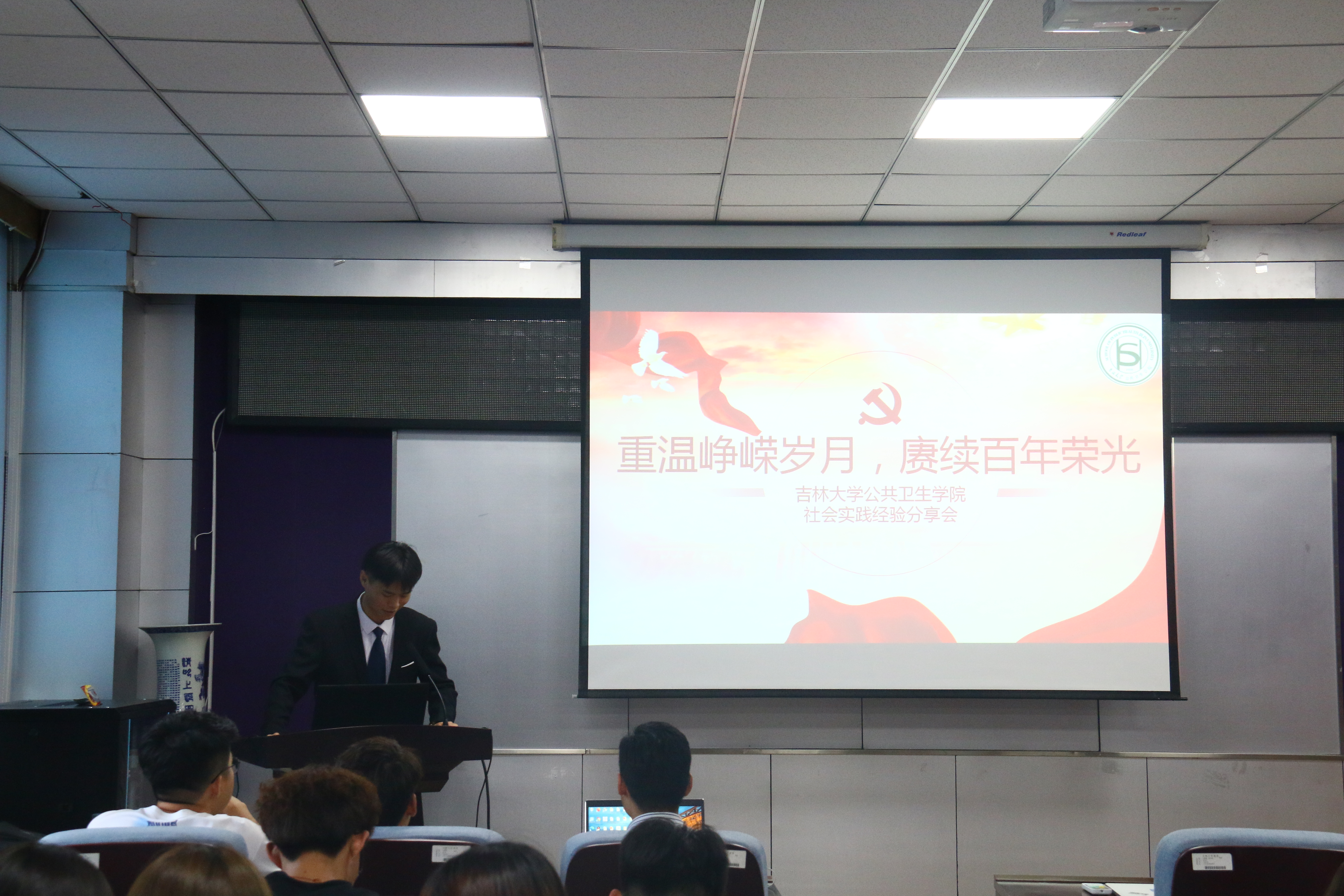 办公楼三楼报告厅举办了社会实践分享会。本次分享会邀请了2016级预防三班的刘家硕同学、2016级放射二班的何双双同学、2017级预防二班的卞骏业同学、2018级预防二班的刘畅同学、2018级放射一班的吕博文同学为大家讲述往年社会实践的经历。