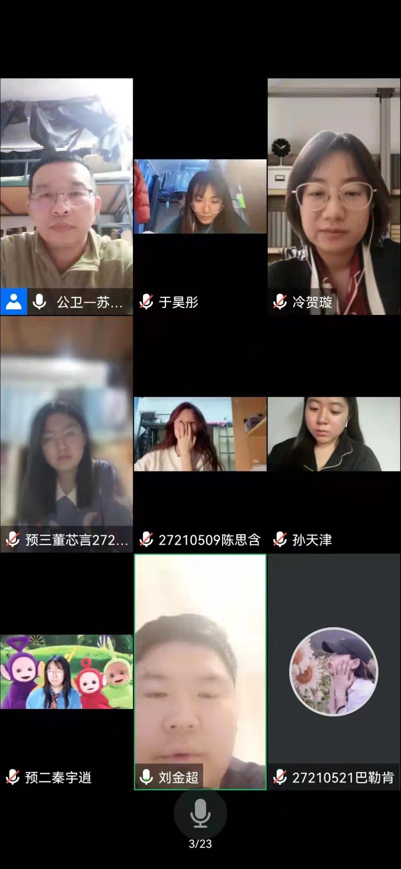 2020级预防一班班主任周丽婷从公共卫生专业角度讲解目前疫情发展态势,在交流中叮嘱同学们,在封闭管理期间要聚焦学习主业,保障网课学习质量,并对同学们普遍感兴趣的有关大创设计、申请书撰写等相关问题进行在线解答。2019级放射一班班主任申延男为同学们介绍了放射医学在抗击新冠肺炎疫情中的具体应用,鼓励同学们刻苦学习专业知识,为防控疫情及中国医学事业发展做出贡献。
