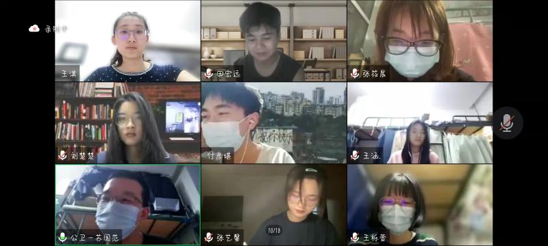 第二环节,由本科生第一党支部书记冷贺璇向全体本科生党员发起倡议。希望同学们要提高政治站位,坚定必胜信心,敢于冲锋在前,勇挑责任重担,践行初心使命,凝聚磅礴伟力。紧接着,本科生第二党支部书记苏国范、第三党支部书记刘心怡进行交流发言,他们对各位学生党员在疫情大难到来时表现出的担当精神和无私奉献感到欣慰,更希望各位同学能够在疫情攻坚战中继续坚持,毫不松懈。党委副书记刘金超书记作出总结发言,他提醒同学们,面对国家有需要、社会有需要的时候,党员理应冲在最前方,但也一定要在保护好自己的前提下展开工作。要明确政治站位,勇挑重担,不忘初心使命。