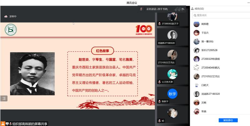 团委组织部于5月4日在线上举办了“共忆红色百年,不忘青年使命”学生之声主题沙龙活动。本次活动由各年级本科生团员参与。