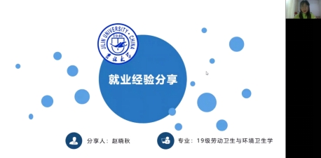 于6月7日晚在线上开展了“‘职’无不言”系列就业指导活动之基层选调生就业经验分享会。本次活动邀请了学院2019级劳动卫生与环境卫生学专业硕士研究生赵晓秋和2019级公共卫生专业硕士研究生胡军军作为主讲人。研究生辅导员丁丁和部分研究生同学参加此次活动。